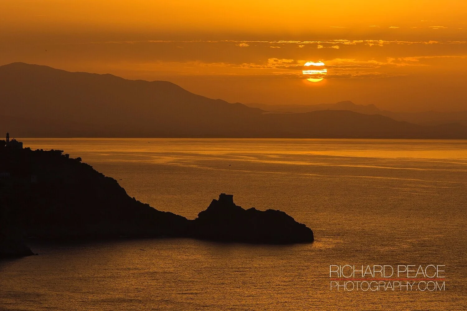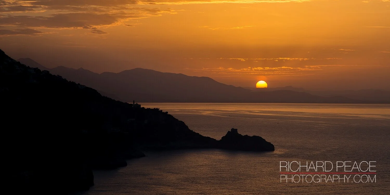 Starting the day … the first two images are of the sun rising over the Amalfi Coast in Italy. And ending the day … the last two images are of the sun setting over the water from the island of North Uist in Scotland, UK.